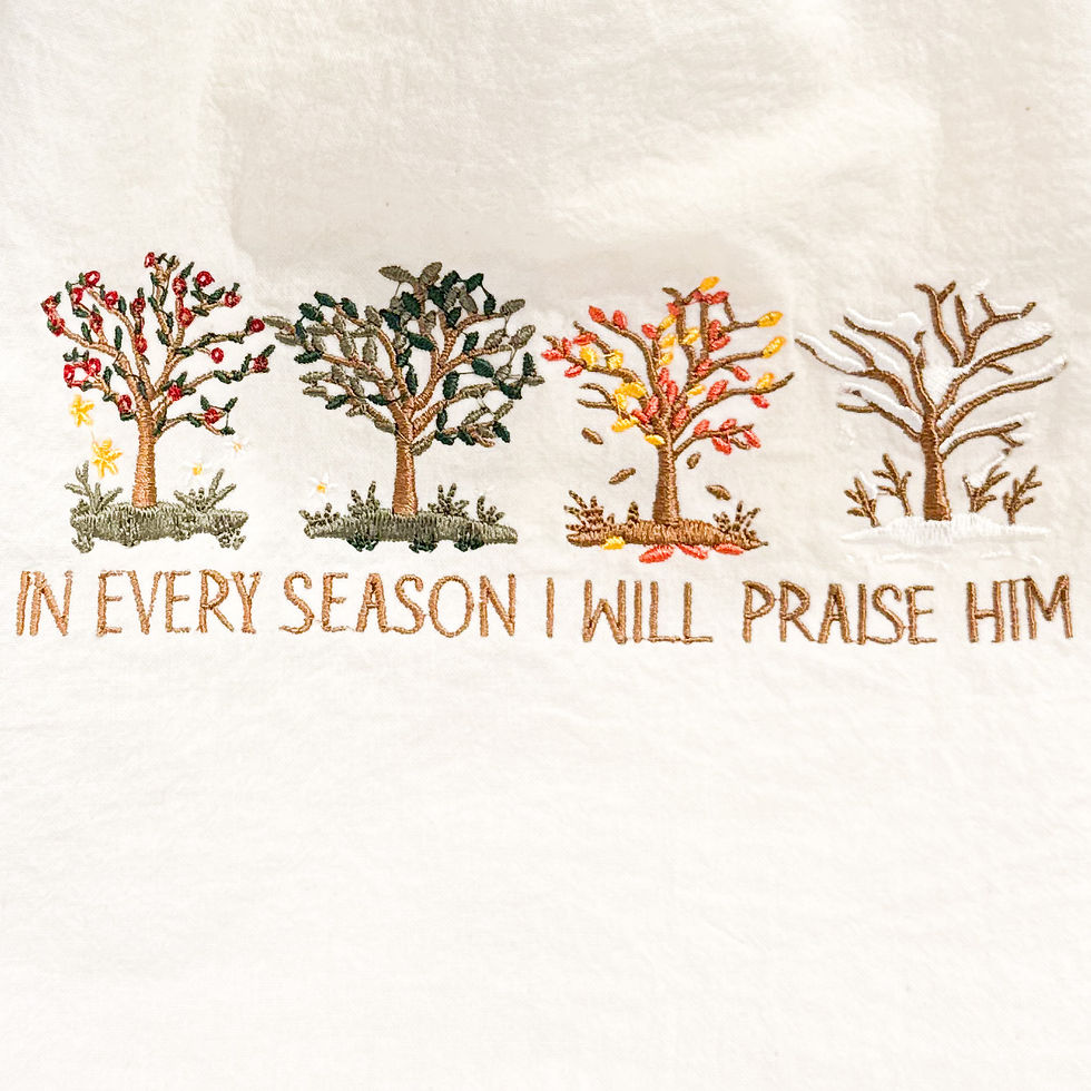 In All Seasons I Will Praise Him Dish Towel